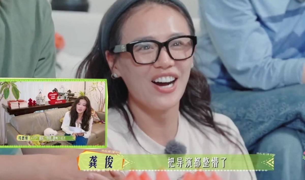 在看片会上,大家几乎都是坐在沙发上,只有龚俊和那英坐在地上。