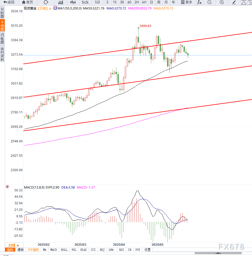 黄金近期的连续下跌主要源于美元反弹与避险需求回落的双重夹击,但中长期支撑力量仍在积聚。尤其在美联储迟迟不降息、以及中东地缘冲突加剧的背景下,金价或在3200美元附近迎来技术性支撑。