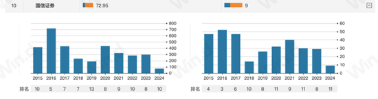 国信证券成立于1994年,2014年登陆A股。作为国内“老牌”券商,国信证券的经纪业务和投行业务不仅是立身之本,而且在A股券商中“名列前茅”,一度夺得“保荐王”称号。